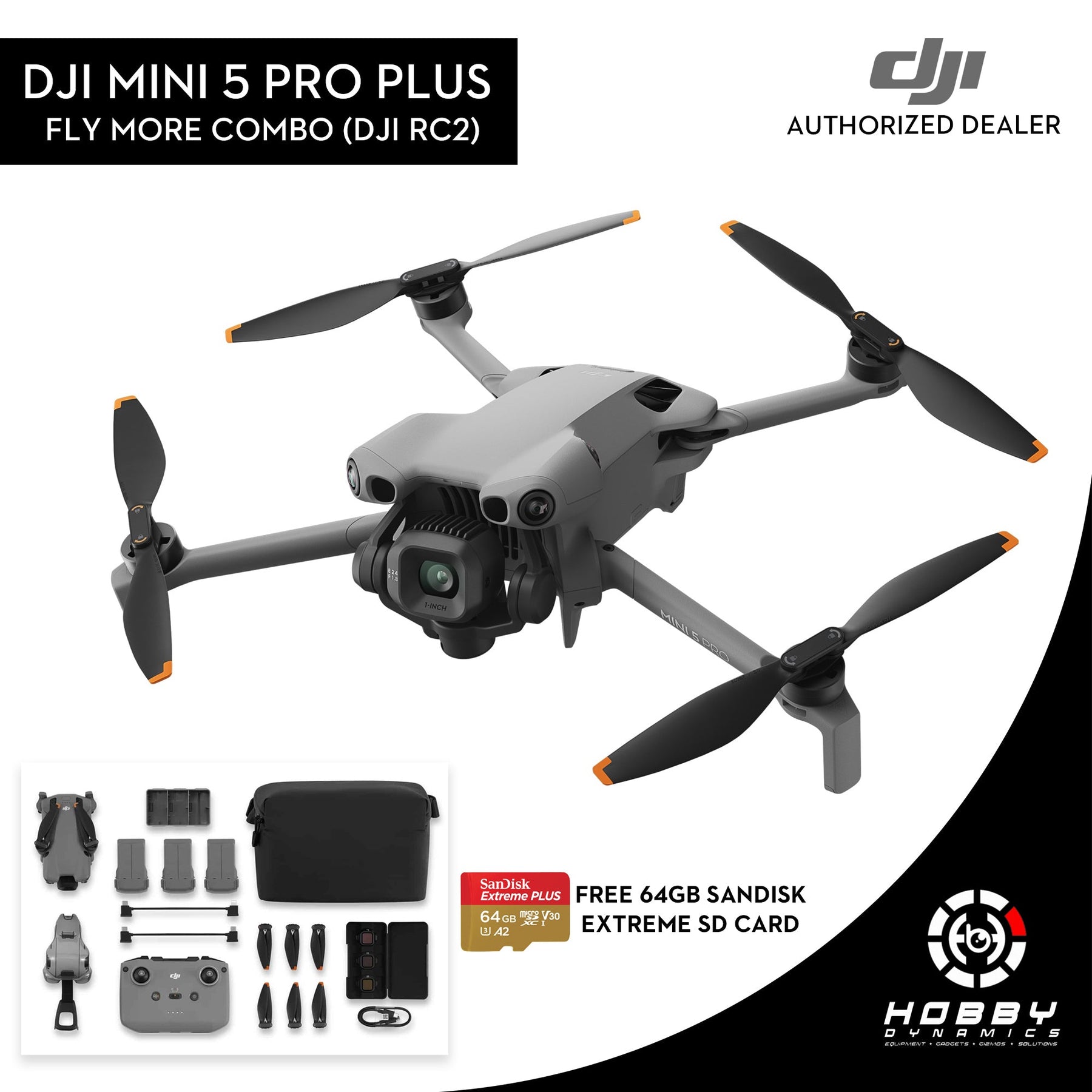 DJI Mini 5 Pro Fly More Combo Plus (DJI RC2) with FREE Sandisk Extreme 64GB SD Card