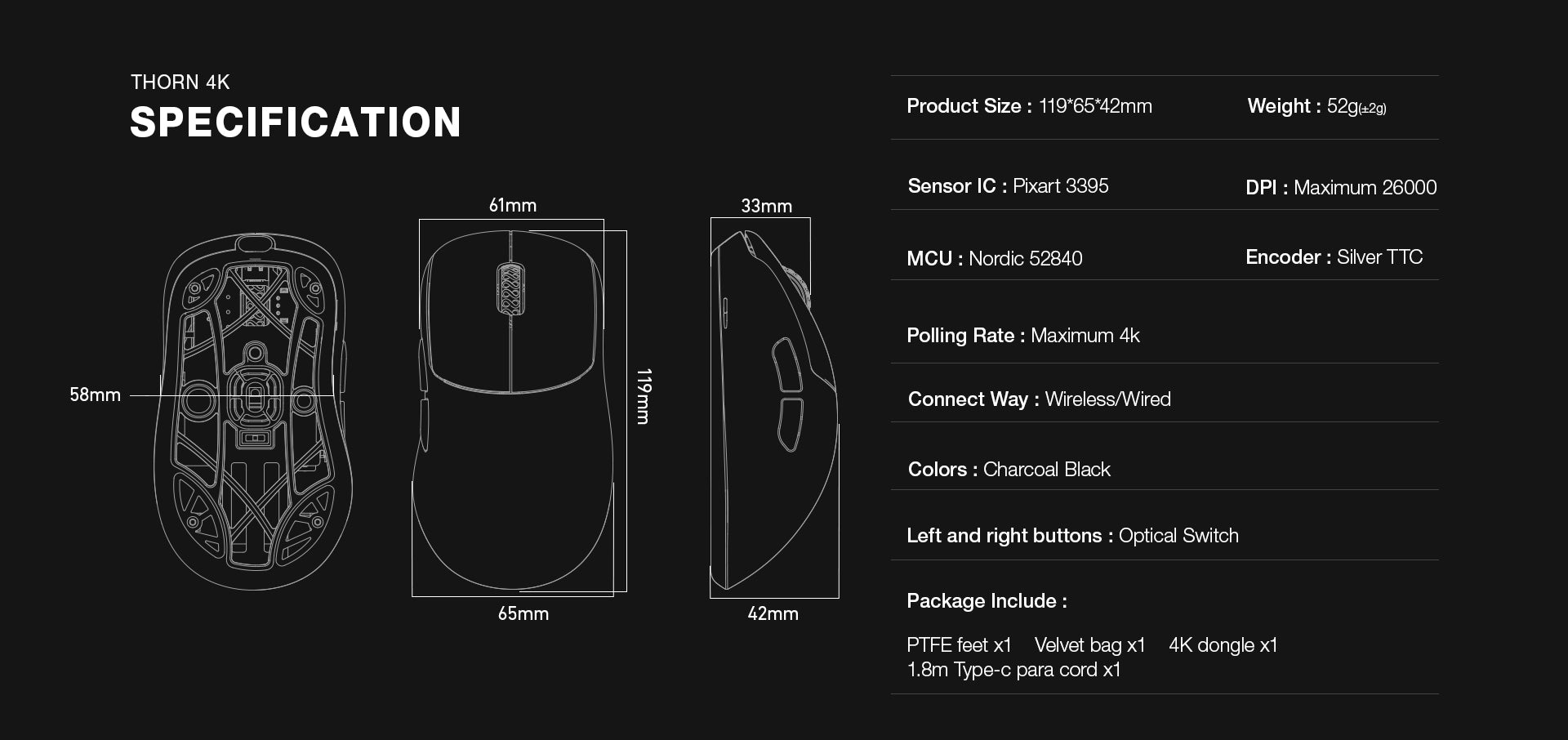 | Sensor model | PixArt 3395 |